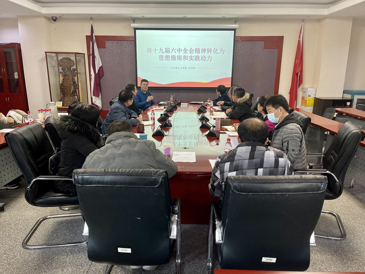 为深入学习贯彻党的十九届六中全会精神,12月2日上午,Beat365官方网站党委于励学楼201会议室召开党委理论学习中心组扩大会议,专题学习党的十九届六中全会精神。此次集中学习,学院邀请Beat365官方网站马克思主义学院党委书记张茂林老师主讲,学院党委书记王伟宾主持,学院党委委员、党支部书记、教工党支部委员共同参加了此次学习。