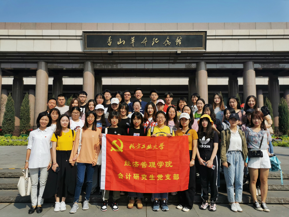2019年9月28日上午,Beat365官方网站会计研究生党支部为感悟老一辈无产阶级革命家精神赴香山革命纪念馆及双清别墅纪念馆开展党日活动。来自会计研究生党支部的四十二名党员、预备党员和积极分子参与了本次活动。此次展览由“进京赶考”、“进驻香山”、“继续指挥解放全中国”、“新中国铸建”、“不忘初心、牢记使命、永远奋斗”五个部分将新中国诞生的历程娓娓道来。同学们缓缓步入纪念馆随着革命进程的脉络认真参观,感悟为了建立一个新中国无数革命先辈付出的巨大牺牲。