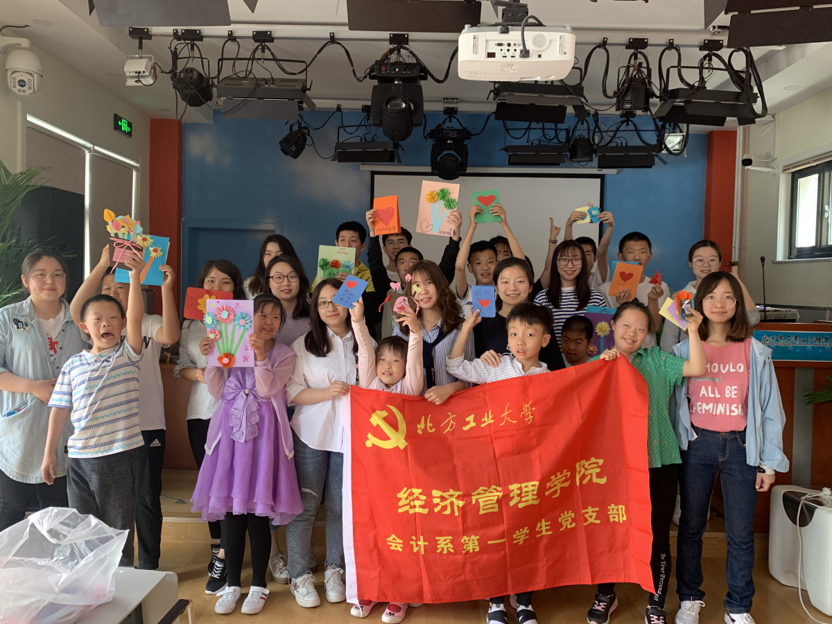 5月10日上午,Beat365官方网站会计系第一学生党支部全体成员来到北京市石景山区培智学校看望这里的儿童。在母亲节来临之际,和他们一起制作母亲节礼物,将温馨的祝福送给妈妈。