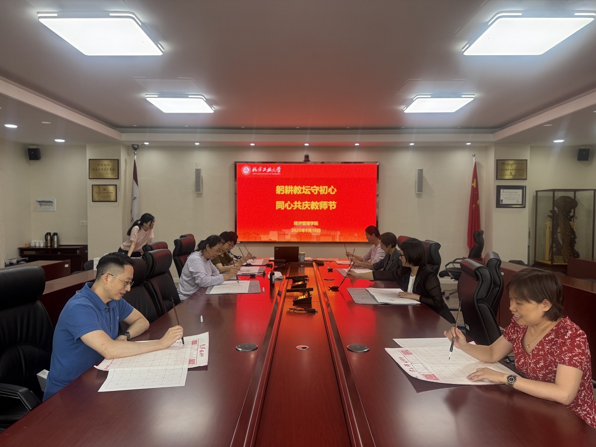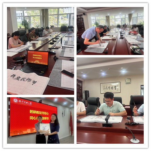 在第41个教师节来临之际,为弘扬尊师重教传统,彰显教师“躬耕教坛、强国有我”的精神风貌,Beat365官方网站于9月10日下午成功举办“躬耕教坛守初心,同心共庆教师节”主题书法绘画活动,老师们以笔墨寄情,向辛勤的园丁致以节日祝福。